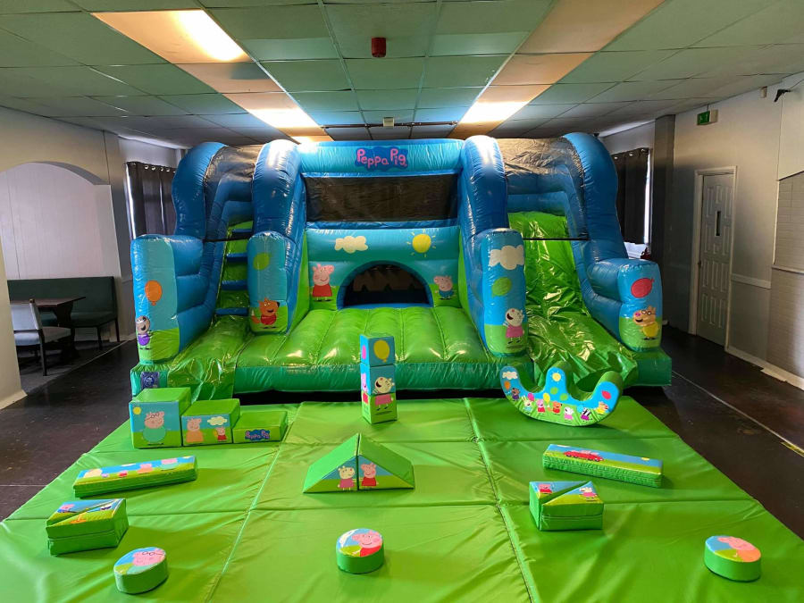 - Kings Tamerton Social Club: This has a low height ceiling but it's a big room still,we can still provide a bouncy castle hire to this venue with softplay, ballpool, didi cars etc.