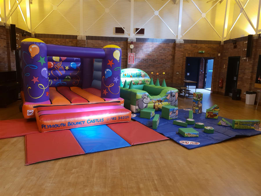 - Kings Tamerton Social Club: This has a low height ceiling but it's a big room still,we can still provide a bouncy castle hire to this venue with softplay, ballpool, didi cars etc.