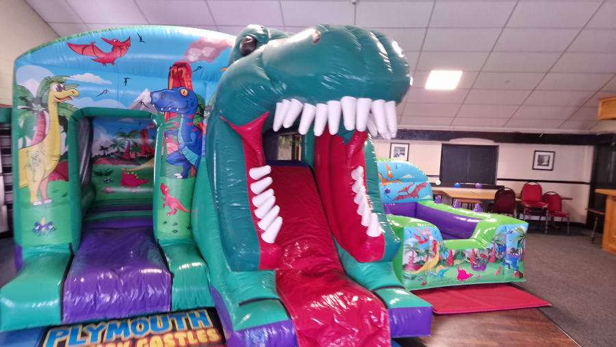 - Kings Tamerton Social Club: This has a low height ceiling but it's a big room still,we can still provide a bouncy castle hire to this venue with softplay, ballpool, didi cars etc.