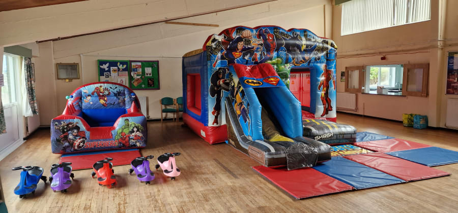 - Kings Tamerton Social Club: This has a low height ceiling but it's a big room still,we can still provide a bouncy castle hire to this venue with softplay, ballpool, didi cars etc.