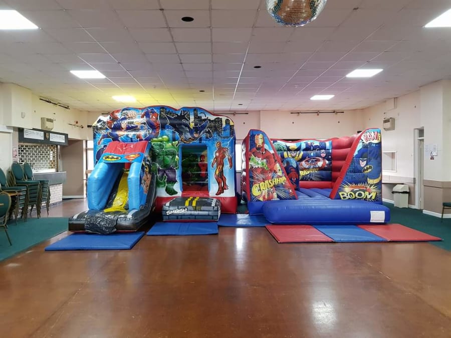 • Kings Tamerton Social Club: This has a low height ceiling but it's a big room still,we can still provide a bouncy castle hire to this venue with softplay, ballpool, didi cars etc.