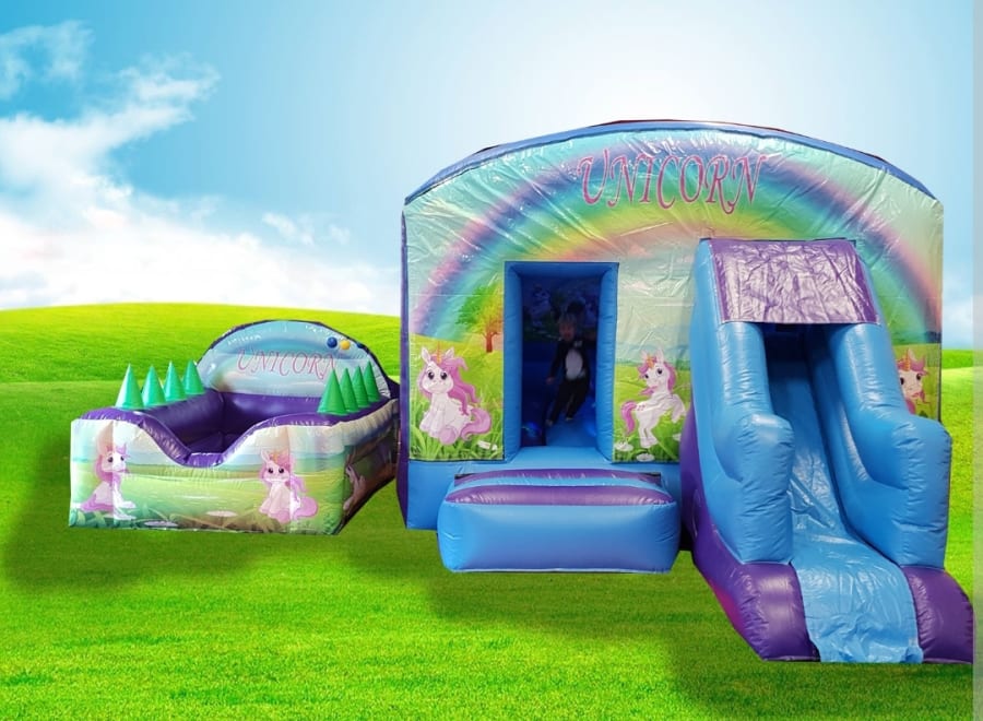 Make your event an unforgettable experience with our Unicorn Slide Castle and Air Juggler Ball Pool in Plymouth. Contact us today to book your magical bouncy castle hire service and let the fun begin!