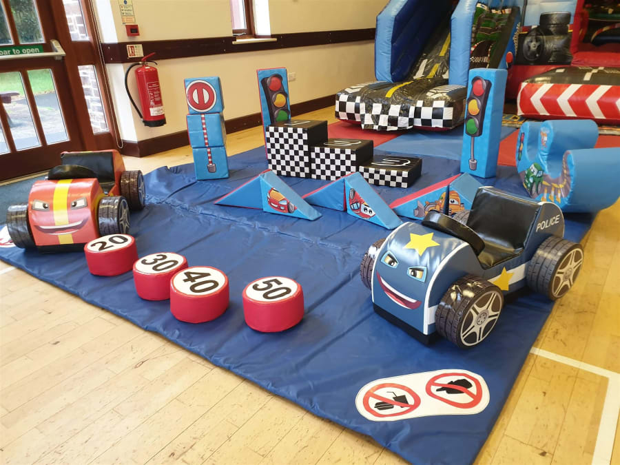 2 x soft play sit on cars.