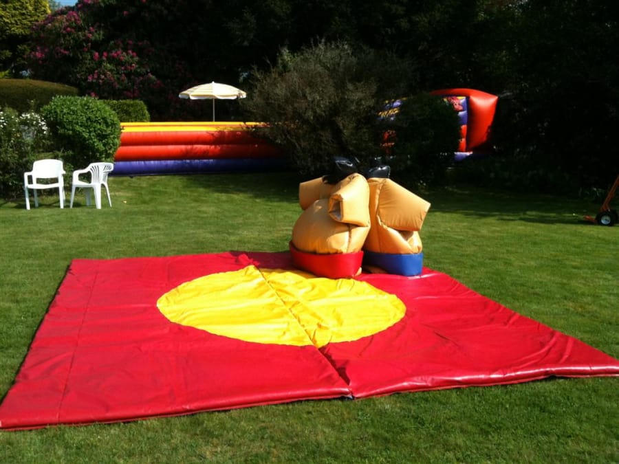 Sumo wrestling can be done indoors or out and requires no power source to use so it can be quickly erected anywhere.